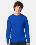 HANES ADT 5.2OZ L/S T. 5.3 oz., 100% U.S. Cotton. Shoulder-toshoulder taping. Rib collar and cuffs.Double-needle bottom hem. Seamless body.Relaxed fit. Tag-free neck label. “C” logo on left sleeve.